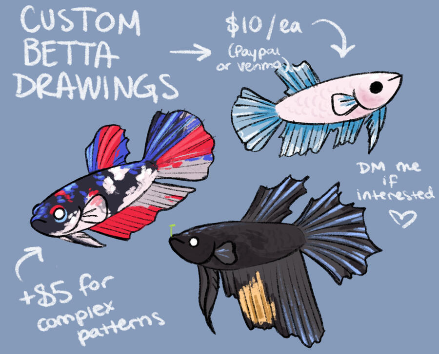 ✮ single color or very simple bgif your fish is especially complicated, i may bump up the price by $5-10. likely only applies to some koi bettas